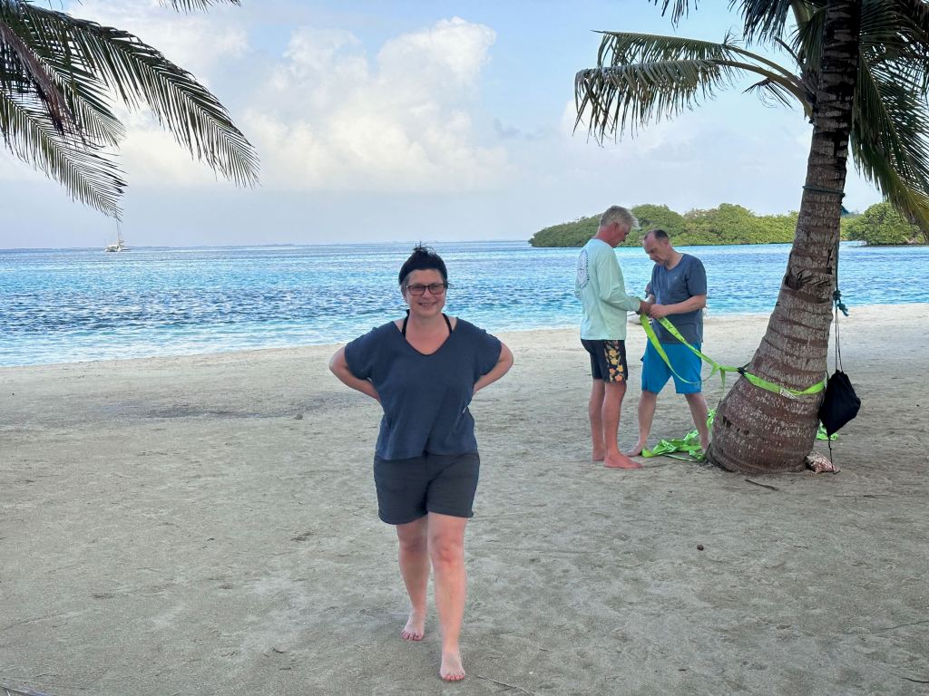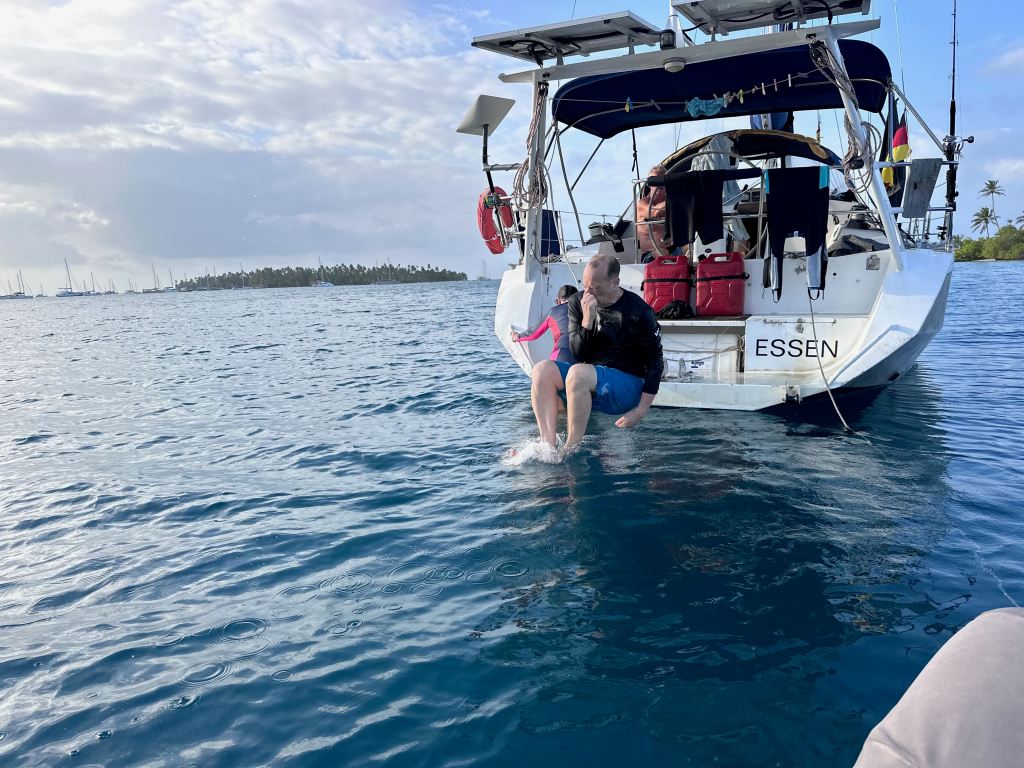 good boys 😁it doesn’t look like there was a strong current – but hell there was!!!we had nothing to do so kept on taking selfiestrunkfish were passing next to Altimatewe got a chickenI know we shouldn’t play with food-but Natalie wanted a few picswith a little nail polish chicks feet would look very elegantthe boys were trying to detangle the slack linejust a pretty picthe three of us in actionthanks to Natalie we had some picsa Martin and Natalie selfiethe only pictures with all four of usI had asked Shiri to take the pictures of us to make Norbert not look unathletic next to super sportive Martin I asked AI to give him a cute potbelly 😁yes we had spent a lot of time inside – and we all look fairly bored, but we weren’t. honestly!Natalie was about to clean the dishes and while waiting for the water to boil she took those picsMartin balancing on the ropeGaby and Aydin who had caught the fishShiri with her family watching the boys cleaning fishI showed Martin how I clean fishbeer deliverysome Gunas setting their little sail the water does look so calm and peaceful but as I said the current was very strongpretty Sibadup