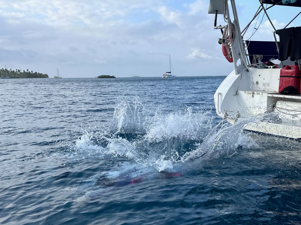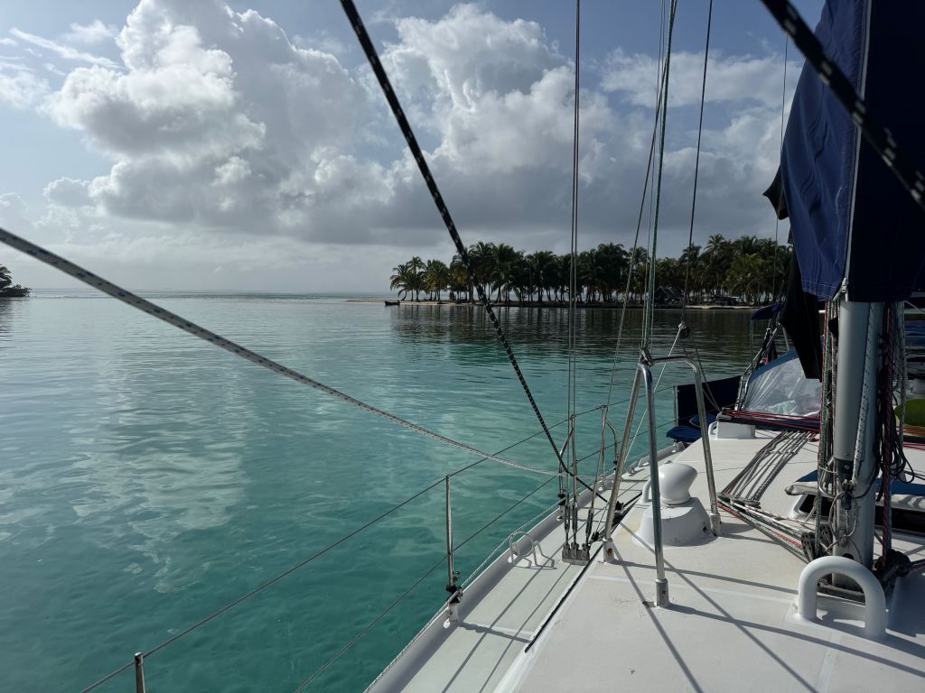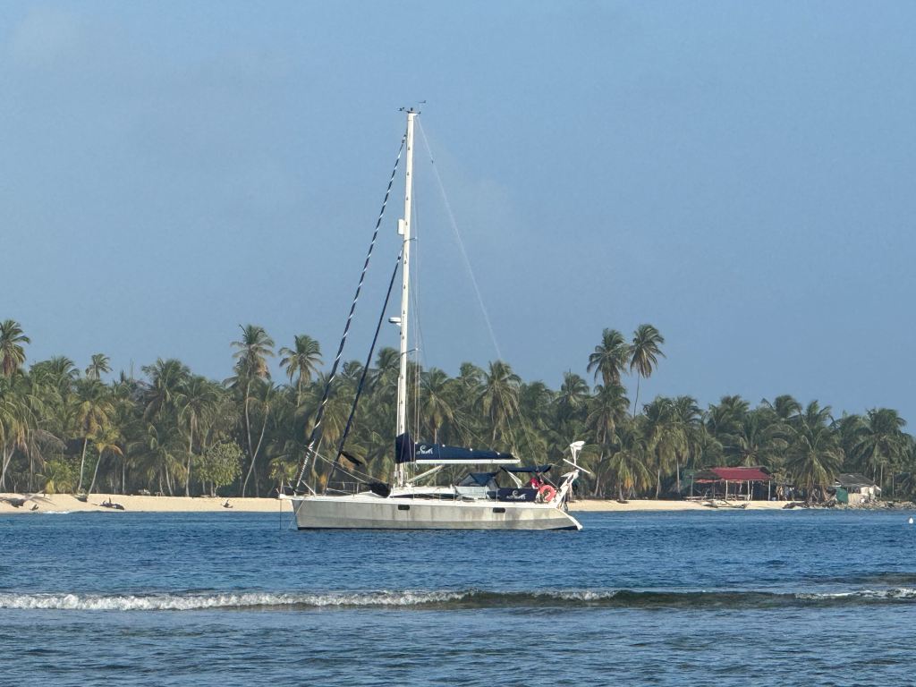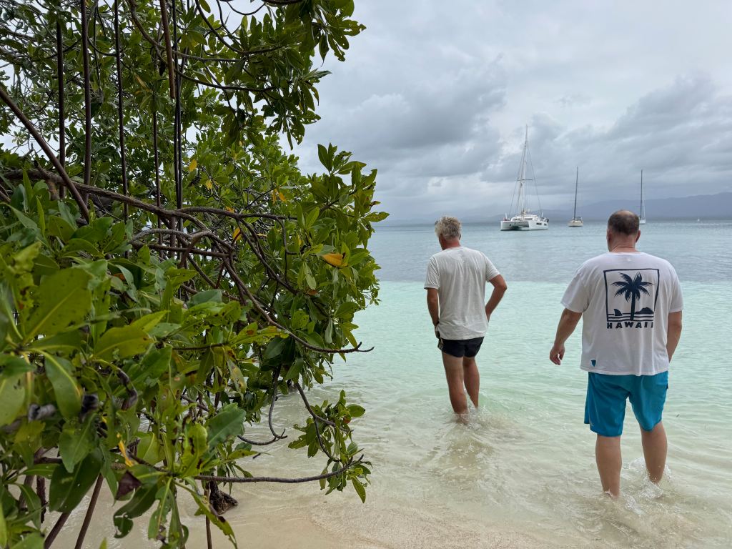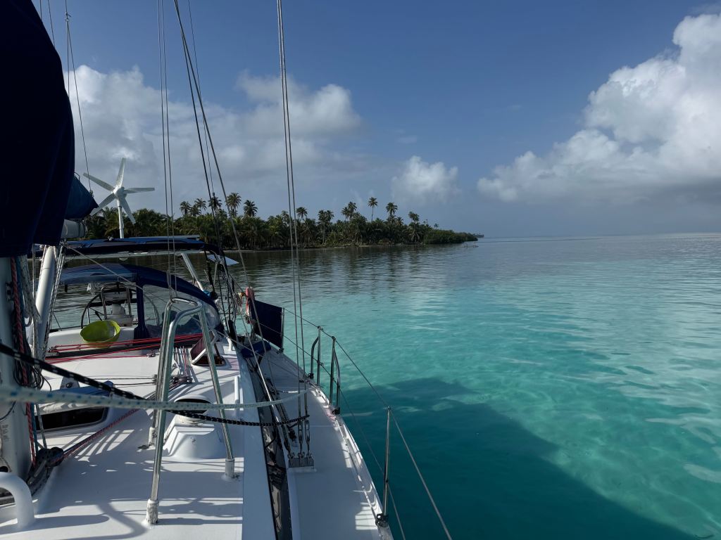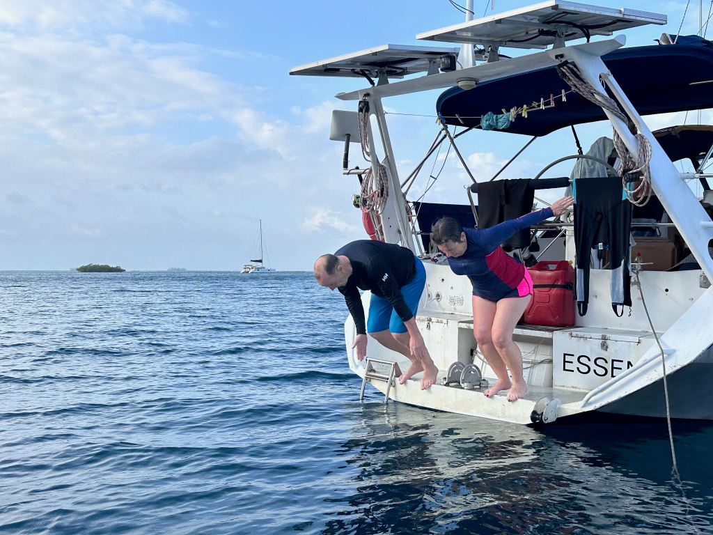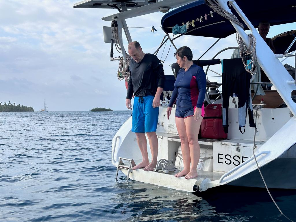 when leaving Sibadup its important to watch the reefs as the way in or out is more a zigzag coursela capitana in action that’s how we perform the anchoring manoeuvre , the headsets look silly but make communicating so much easiersnorkeling stop at Sandy island Norbert and our guests were out having fun and I prepared some breakfastwe had the luxury of ham!!!couldn’t make my mind up which pic I liked bestsmilea band cover pic😉