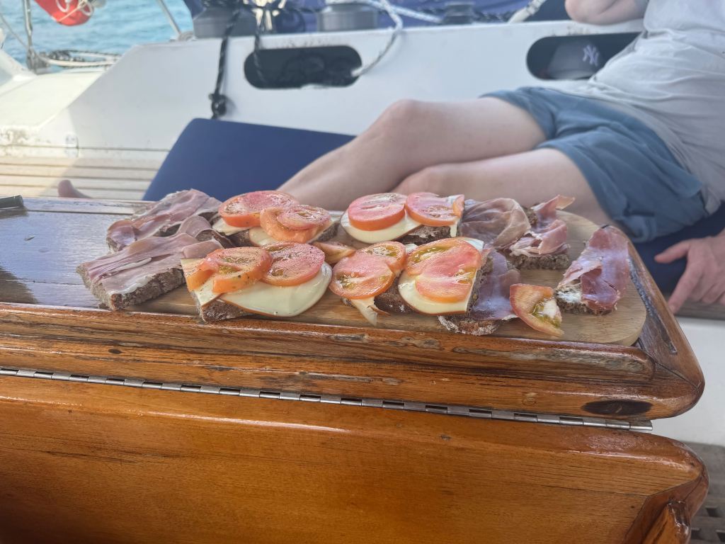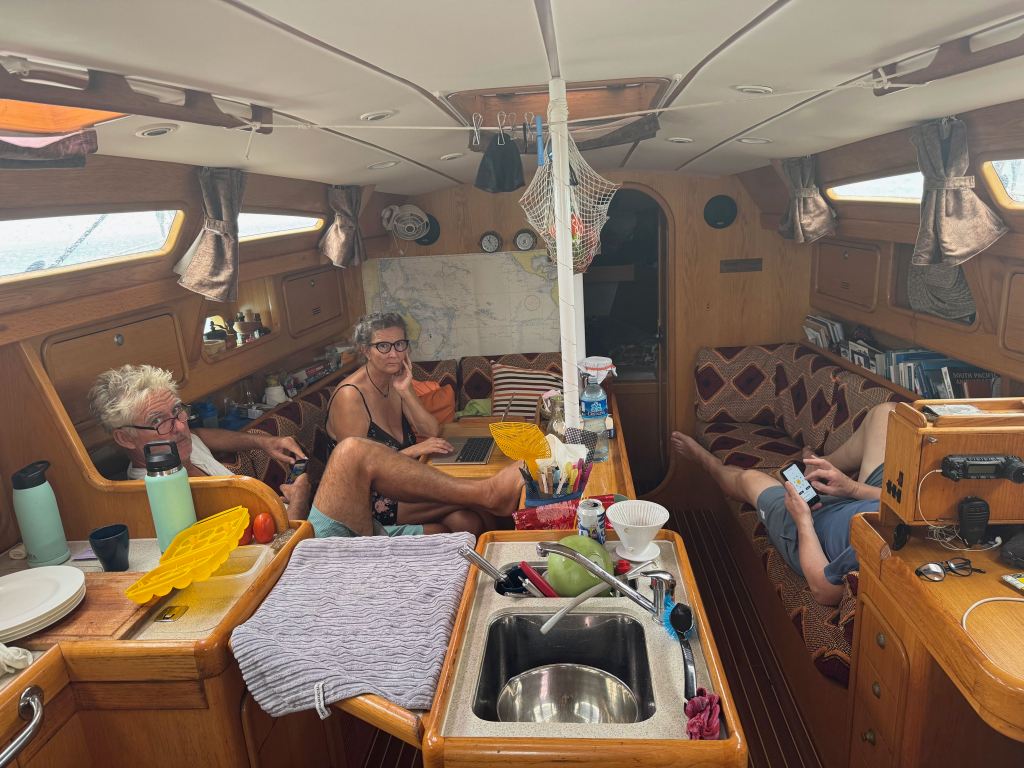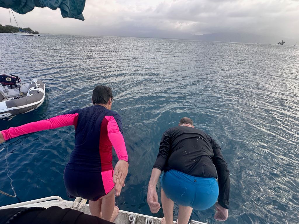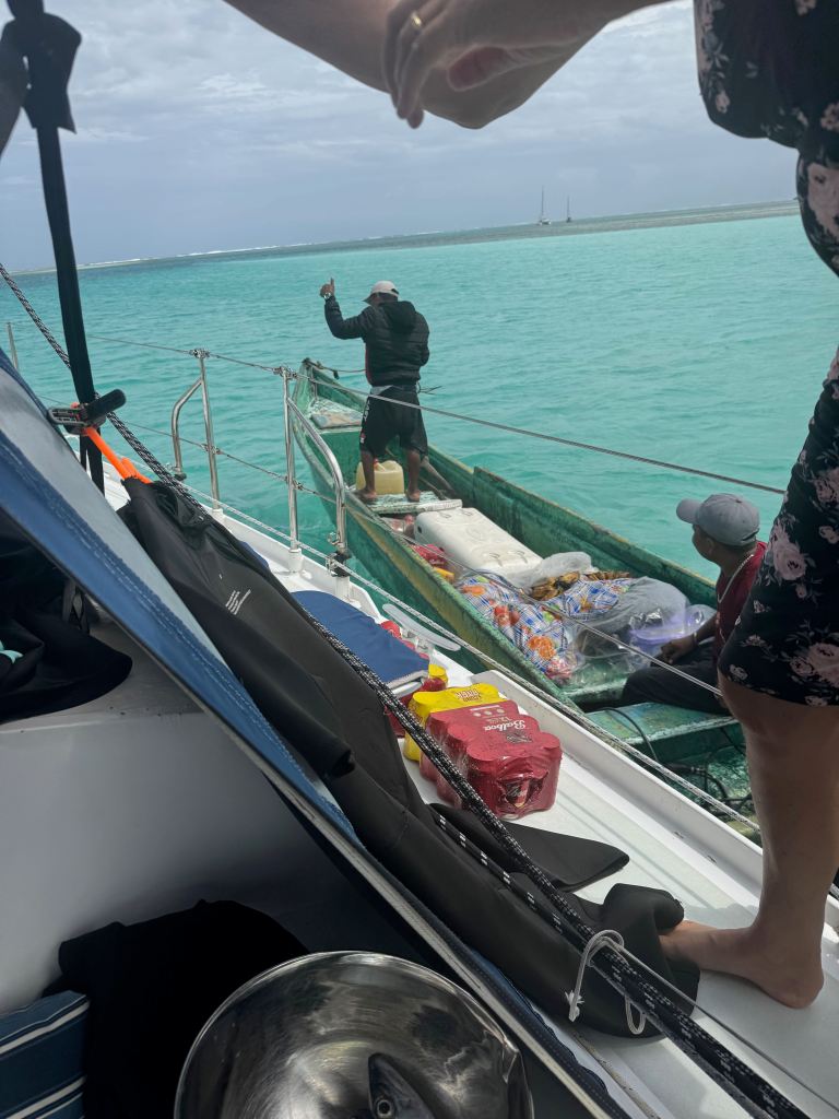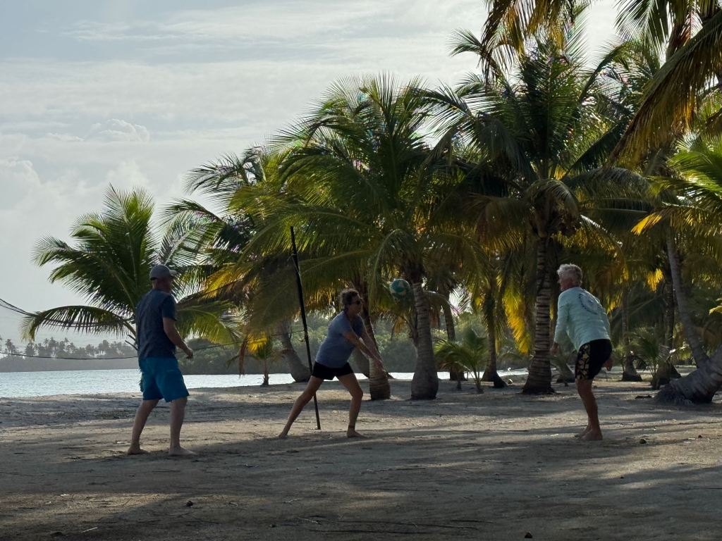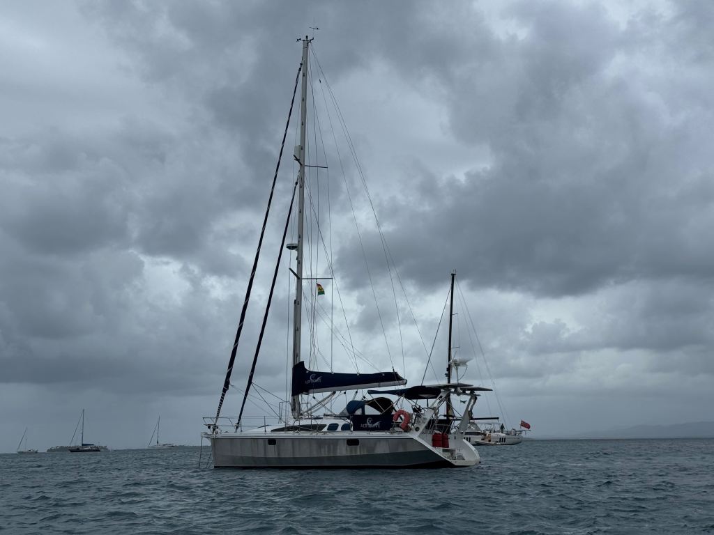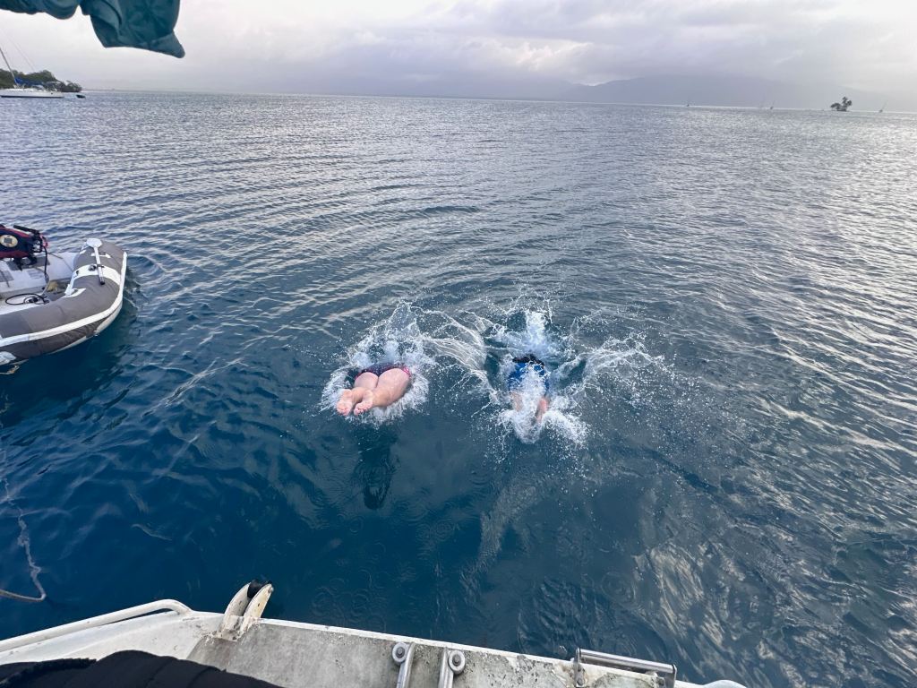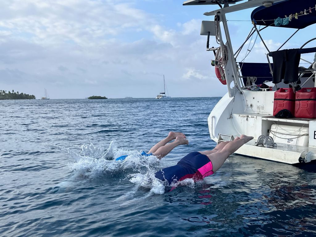 when leaving Sibadup its important to watch the reefs as the way in or out is more a zigzag coursela capitana in action that’s how we perform the anchoring manoeuvre , the headsets look silly but make communicating so much easiersnorkeling stop at Sandy island Norbert and our guests were out having fun and I prepared some breakfastwe had the luxury of ham!!!couldn’t make my mind up which pic I liked bestsmilea band cover pic😉