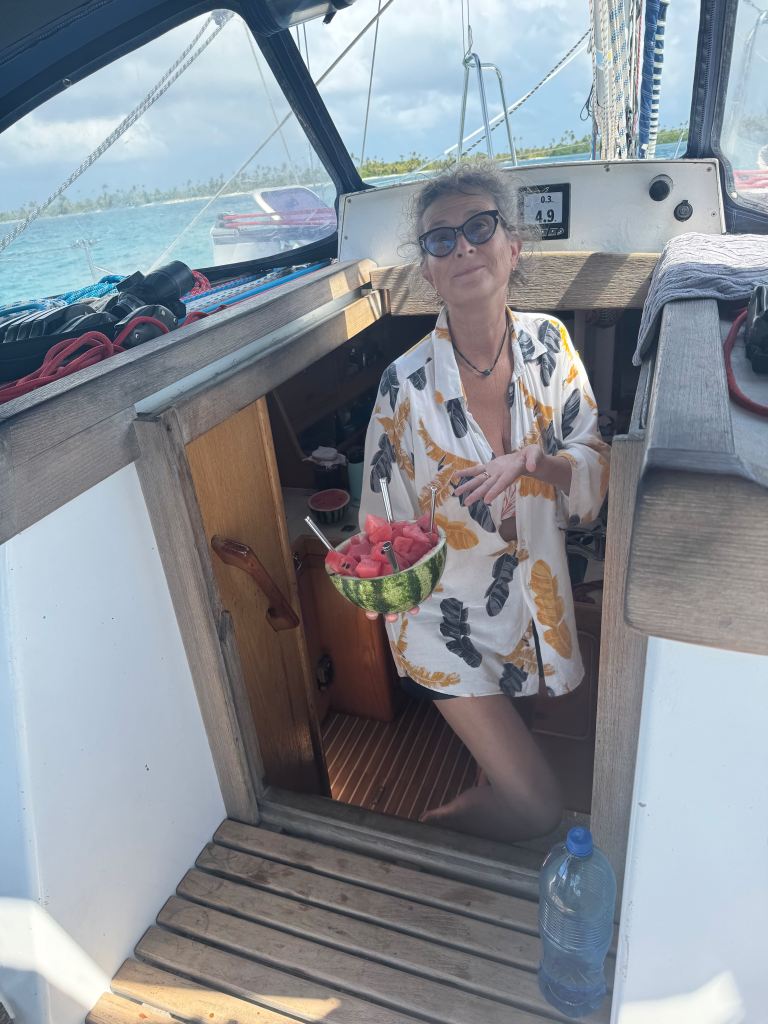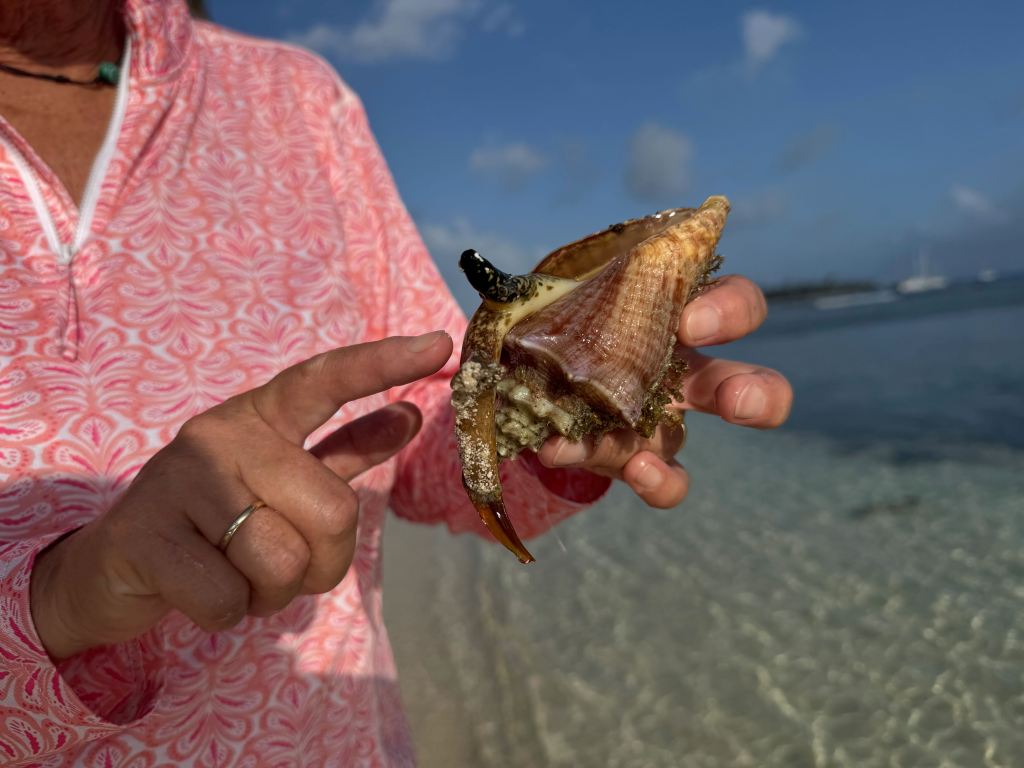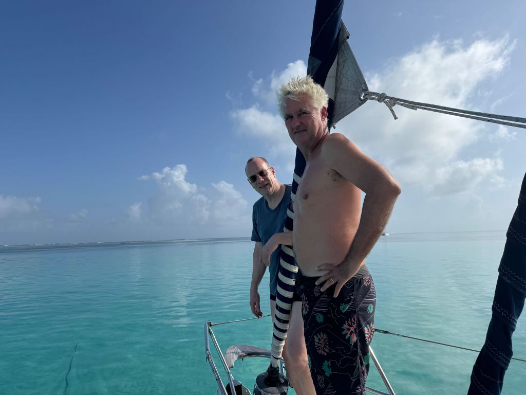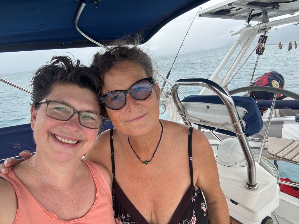 dinner was safeain’t she beautiful?this was a crazy baby conch, she was not scared at all, I could touch her and she still came out and was curiouslook at her – usually they disappear in their shell and only come out again when they feel safesome nature impressionsour dear friends on our last afternoon that’s obviously usand I had the pleasure of being between those handsome boysand a last girly selfiat the last hours Martin still did some stainless steel polishing – I wonder if he liked being with us?and off they were
