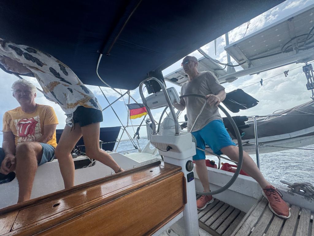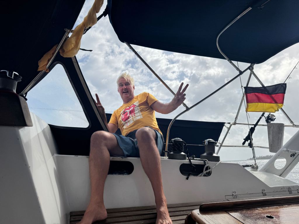 the short behind me on the line was the new one Norbert had fished out of the waterwe had a super fast sail to Waisaladupof course we were fast, Martin was in charge!and Norbert pretending to be cool