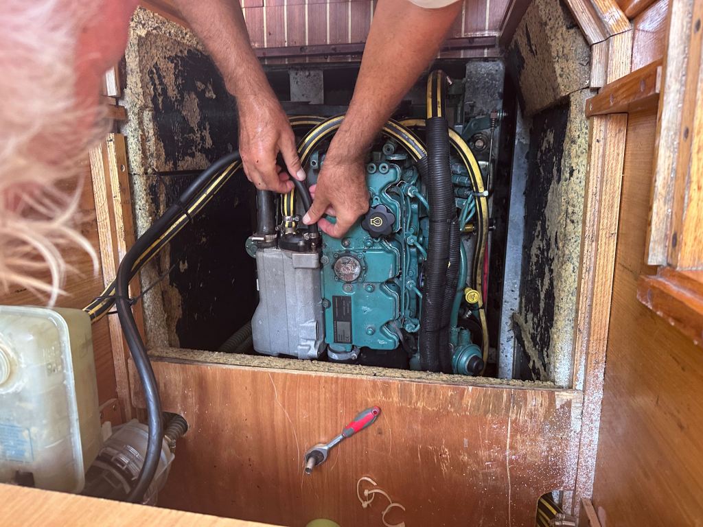 It was Friday the 13th of March when we decided to leave Cartagena, heading back to San Blas. After a quick visit ashore to print out our exit Zarpe we lifted the anchor heading to our first stop Islas Rosarios, 20 nm away. Even if I might repeat myself, but I’m once again pretty sure sailors do have guardian angels! ‘Cause only thanks to Norbert’s sudden intuition to check the engine, we were literally saved from loosing our engine. What? Yes! By chance he checked on the engine and saw that water was in the bilge. Not good at all. We were about 45 min out of the bay of Cartagena when Norbert realised that the hose between the heat exchanger and expansion pot was broken. All the cooling water was already in the bilge and not running through the heat exchanger anymore. Without water, no cooling. Without cooling the engine would have overheated and then just broken down. How lucky were we? For sure someone made Norbert look at the engine so we could save it and a loooooooot of money. We turned around and headed back to the city. Of course Norbert filling in water making sure the engine wouldn’t overheat. Once back, Norbert went ashore to get a new hose. Already in the first shop he got lucky and found a fitting one. Meanwhile I had cleaned the bilge so he could immediately attach the new hose. Only two hours later -very happy and relieved- we were again on our way. I can tell you that was a delay we were more than willing to have done – I don’t want to imagine what would have happened if Norbert hadn’t seen the water in the bilge…