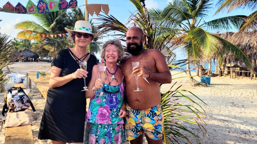 Miriadiadup on our trip to Mariadiadup we caught a beautiful fish (horse-eye jack) we were so happy to be at anchor again our hook just in front of a reef and (I think) Niakalubdur in the right back Mariadiadup Cushla and Altimate in the back Mariadiadup the leaves of this roof looked so soft a …